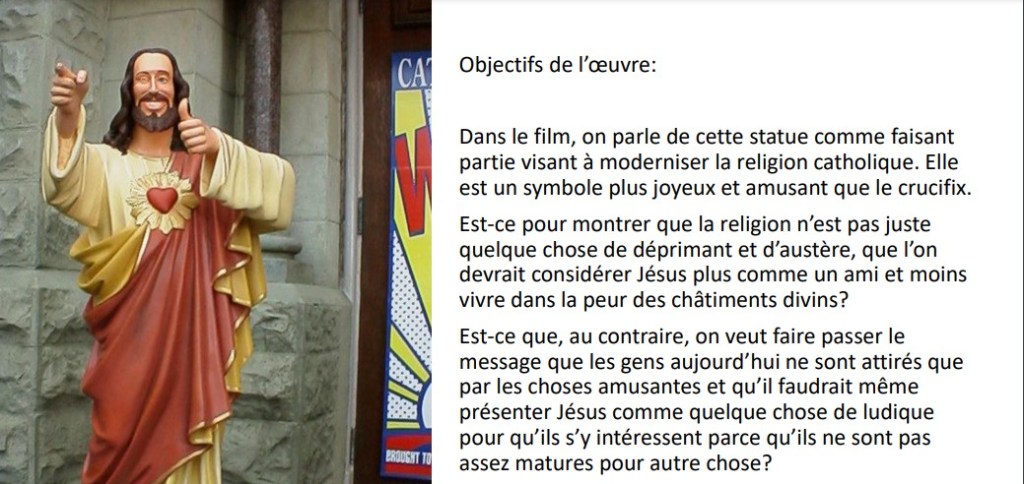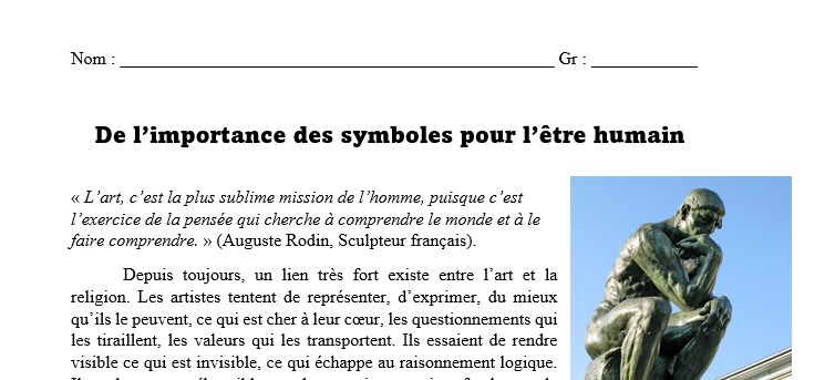 Après avoir réfléchi à plusieurs œuvres d’art symboliques, religieuses ou non, et la manière de les interpréter, j’aime bien terminer le thème en donnant la possibilité aux élèves de faire leur propre œuvre symbolique. Souvent, après avoir regardé et réfléchi à d’autres œuvres, les élèves font des commentaires sur ce qu’ils auraient fait s’ils avaient été à la place de l’artiste. Voici le moment de les mettre à l’épreuve!
