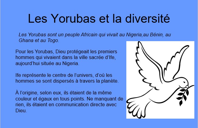 La présentation comprend aussi les réponses au questionnaire des élèves. Ce corrigé pourrait être réservé à l’usage de l’enseignant, ou encore projeté en classe pour une correction collective. Le tout comprend 23 diapositives. On pourrait aussi utiliser uniquement le document de l’élève, sans la présentation, pour des élèves qui auraient besoin de faire du travail individuel.