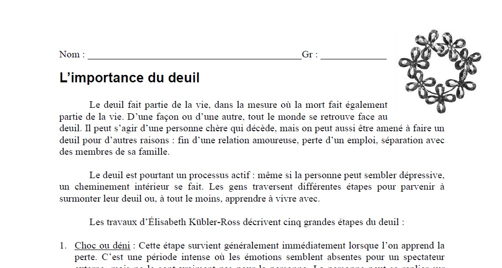 Le document de l’élève dans son ensemble (texte et questionnaire) comporte 8 pages. Il pourrait être nécessaire de prévoir suffisamment de temps pour passer à travers, surtout avec des élèves participatifs. Le document comprend aussi une grille d’évaluation à la fin, qui permet de faire une correction très rapide et de garder des traces.