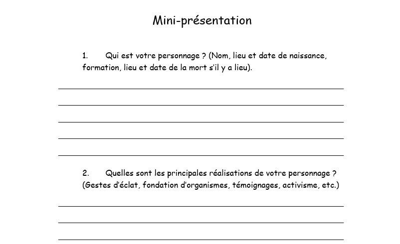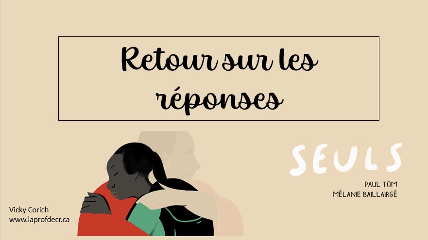 Le document corrigé est inclus dans la présentation. Il pourrait être réservé à l’usage de l’enseignant, mais il pourrait aussi être projeté pour une correction collective. Il faut garder à l’esprit que ce sont des suggestions de bonnes réponses. Des réponses différentes pourraient être acceptées selon votre jugement. Une grille d’évaluation est également prévue.
