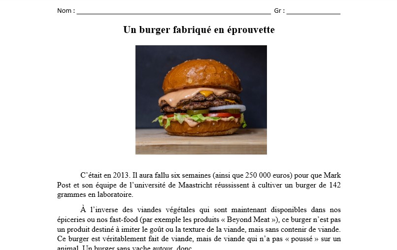 Le travail comprend un texte, un gabarit de réflexion éthique, une grille d’évaluation pour une correction rapido-presto et un corrigé, qui pourrait être réservé à l’usage du prof ou projeté en classe pour une correction collective.