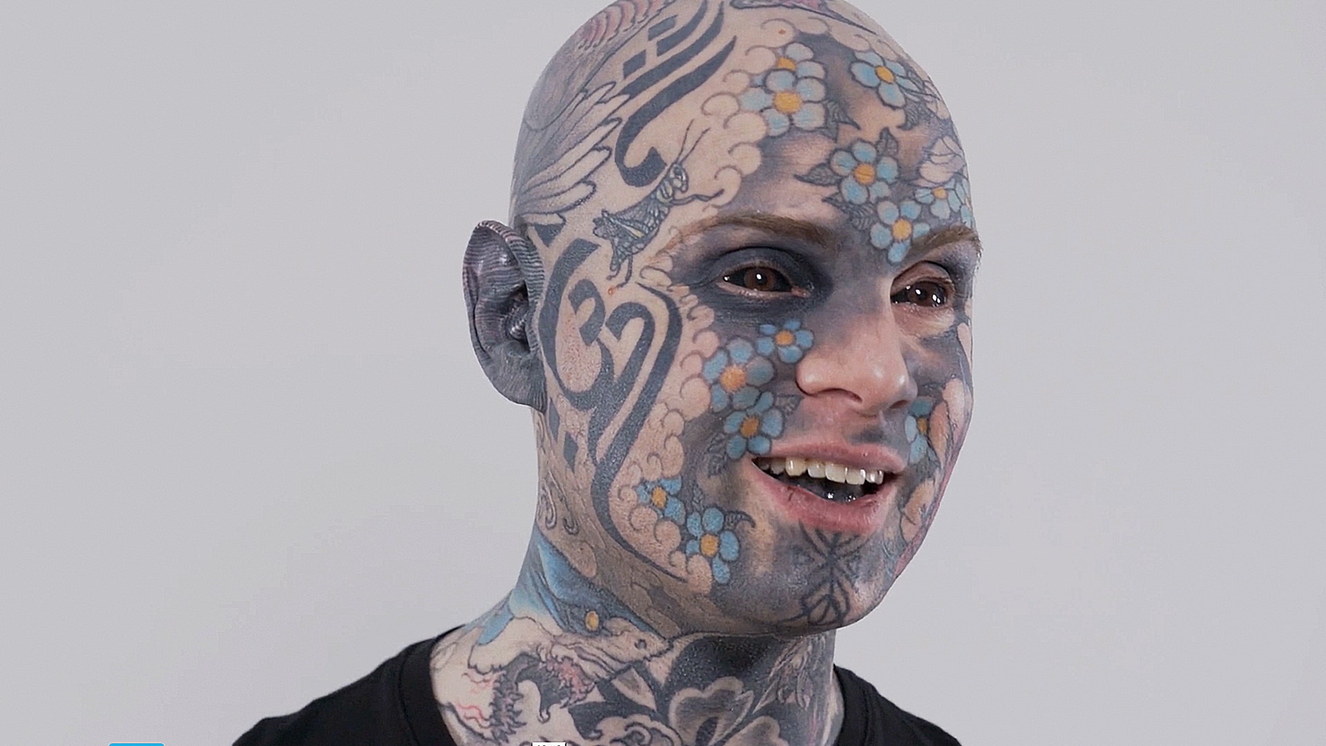 Sylvain Hélaine de son vrai nom, alias Freaky Hoody, s’est fait tatouer le corps, le visage, la langue et même l’intérieur des yeux.