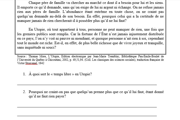 Le tout se conclut par une série de questions et quelques choix de réponse. Je m’étais quand même inspirée largement des questions du cahier (Tisser des liens: https://www.editionscec.com/qc_fr/l-essentiel-de-tisser-des-liens.html), auquel j’avais ajouté quelques questions originales. Ce n’est rien de super grandiose, mais ça peut faire partie de l’introduction du thème, ou encore dépanner quand on est mal pris (Tsé comme de la suppléance de dernière minute, genre).